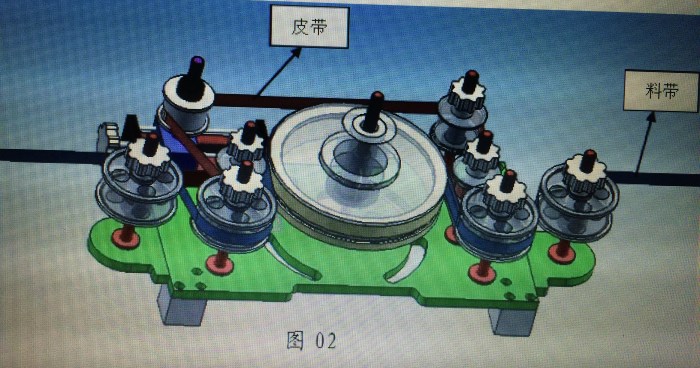 ⑴. 牽引裝置帶動料帶,將料帶拉進(jìn)去,依次經(jīng)過導(dǎo)位輪,點(diǎn)鍍模具,然后出去。