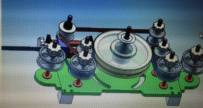 1. 導(dǎo)位輪 2.皮帶輪 3.點(diǎn)鍍模具 4.水囊 5.張力輪 6.耳朵 7.調(diào)節(jié)把手 8.陽極軸