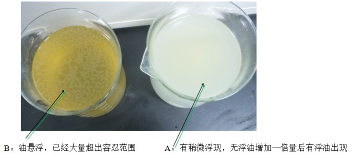 10秒鐘:A;大部分油層除掉 B;只有油層受到乳化現(xiàn)象,油層依然在上面。